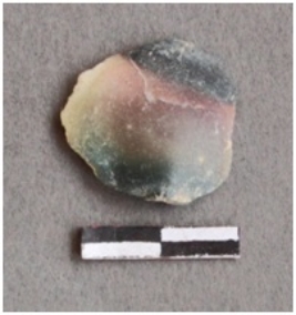 | Description / विवरण | This is a lithic debitage, a flaked jasper with bands, there is a prominent bulb of percussion, flaked ridges on either side surface. |
