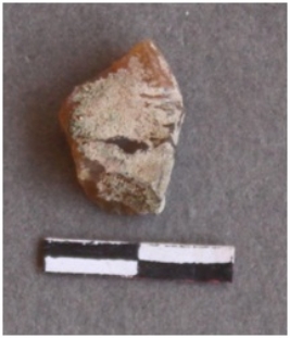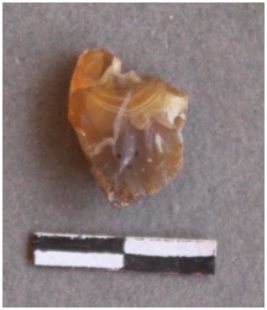 | Description / विवरण | Chalcedony with cortex and flaked, fractured marks with ripples. |