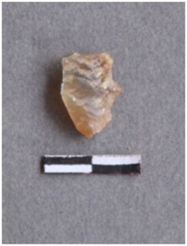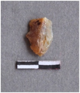 | Description / विवरण | Chalcedony with cortex on one side, retouched ridges on the other. |