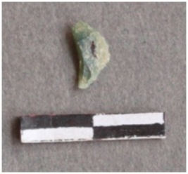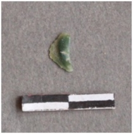 | Description / विवरण | A small flake with a bludgeons ripple on one side, green in color. |