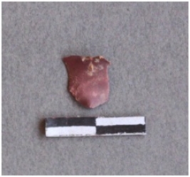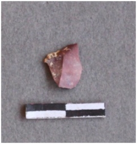 | Description / विवरण | A small fraction of chert flake with a bulb of percussion at one side, dark red in color. |