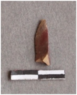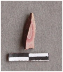 | Description / विवरण | Jasper fragment with prominent ripples of bulb of percussion and ridges flaked removed side. |