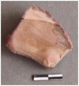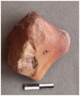 | Description / विवरण | Banded chert with all side covered with cortex receipt one, there is a bulb of percussion on this side, possibly a primary flake, with prominent striking platform. |