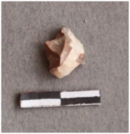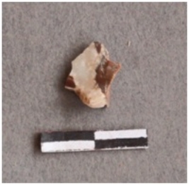 | Description / विवरण | This is a small banded fragment of chert stone white treatment band in between brown and yellow ochre layer. A chipped off piece, possibly a manufacture waste product. |