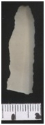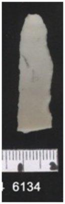 | Description / विवरण | The blade is curvilinear with prominent bulb of percussion. The mid rib is not prominent, and radiates towards the distal end. The edges show re-working. |
