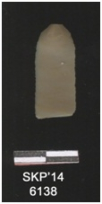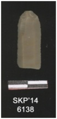 | Description / विवरण | It s a fragment of a blade. Its been made of indirect percussion technique. Prominent bulb of percussion is there on the ventral side. The cross section is in the shape parallelogram. There is a erasure fracture on the positive bulb of percussion. |