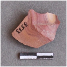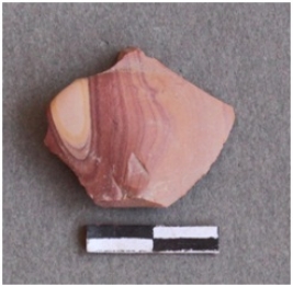| Description / विवरण | This is a fragment of chert stone, banded. There is a bulb of percussion seen on the ventral side. Ridges flake on the other striking platform seen. |