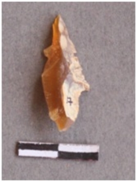 | Description / विवरण | Lithic debitage, having cortex on the surface. Ripples on surface due to heavy percussion in the nodule. Flake ridges feature facture with striking platform and bulb on the ventral side it visible. |