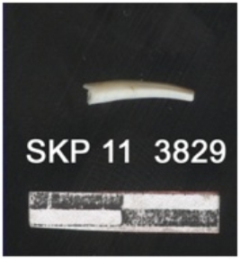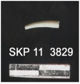 | Description / विवरण | This is a fragment of a small dentallium shell with one pointed tapered end, naturally perforated and natural striation marks. |