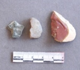 | Description / विवरण | This is a chert fragment covered with cortex, maroon in color. There is calcium patination over the cortex. |
