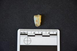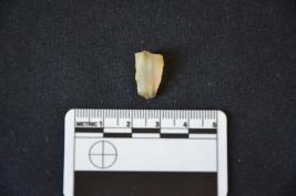 | Description / विवरण | A chalcedony core fragment with platform and blade scars. One edge is with use mark. |