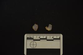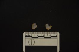 | Description / विवरण | 2 Chalcedony flakes have flake scars and ridge on dorsal side, striking platform, broken from distal end and bulb on ventral side. |