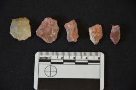 | Description / विवरण | Fourty three pieces of stone tool manufacturing waste, twenty eight of chert, six of chalcedony and nine of agate. |