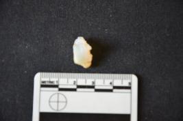 | Description / विवरण | Fragment of chalcedony core has blade scars and flake scars. |