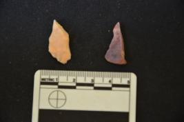 | Description / विवरण | Two hundred fifty three pieces of stone blade manufacturing waste, two hundred twenty nine of chalcedony, ten of chert, nine of carnelian and five of agate. |