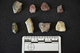 | Description / विवरण | Total lithic debitage 9 Chert - 8, 1 of them is flake has striking platform and bulb on ventral side Crystal - 1 |