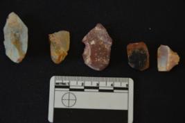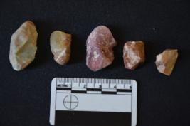| Description / विवरण | A chalcedony core with platform and one surface with three blade scars. |