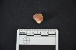 | Description / विवरण | A heated chalcedony with platform and five blade flake. |
