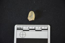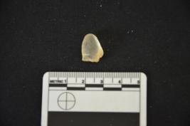 | Description / विवरण | A chalcedony core with platform and four blade scars on one surface. |