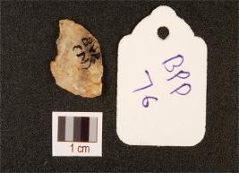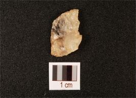 | Description / विवरण | Fragment of dabitas, made on quartz, flake marks on surface, irregular edges. |