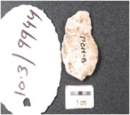 | Description / विवरण | Debitage with blade scars and cortex on surface. |