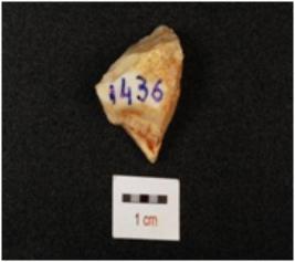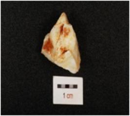 | Description / विवरण | A chert debitage with smooth surface and flake scars, cortex is visible and white in colour with bands. |