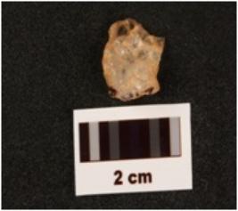 | Description / विवरण | A quartz debitage with smooth surface use wear marks on edges. |