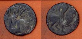 | Description / विवरण | Descrpn./Obv Recumbent bull facing left, wearing jhula (saddle cloth), with trisula (trident) symbol on rump. Above, legend in Sarada script Sri Samantadeva . Descrpn./Rev Rider with lance on caparisoned horse facing right. On left, Sarada letter bhi and on right, Sarada letter ta |
