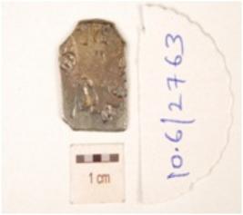 | Description / विवरण | A punch mark silver coin rectangular in shape having sun, deer, bull, plant and floral motif on obverse side, and floral pattern on reverse side, cutting edges, slightly tarnished. |