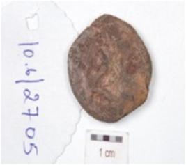 | Description / विवरण | A copper coin, round in shape, image of diety seated on elephant on obverse side, reverse side is defaced, chemically treated surface and preserved. |