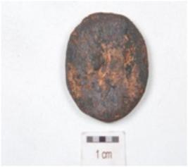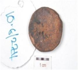 | Description / विवरण | A copper coin, round in shape, image of diety seated on elephant is visible on obverse side and standing diety on reverse side and chemically treated. |
