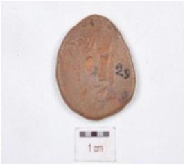 | Description / विवरण | A copper coin, round in shape, image of seated diety with right hand on akimbo and left hand raised depicted on obverse side, reverse side defaced, chemically treated and preserved and made by cast technique. |