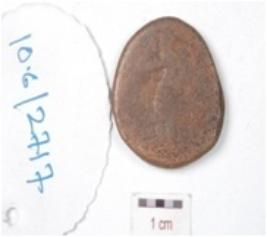 | Description / विवरण | A copper coin, round in shape, image of standing diety with left hand on akimbo and right hand is raised, depicted on obverse side and diety riding on elephant is depicted on reverse side, made with cast technique, chemically treated and preserved. |