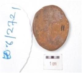 | Description / विवरण | A copper coin, round in shape, image of standing made with both hand raised is depicting on obverse side and standing diety with left hand raised is depicted on reverse side, made with cast technique, chemically treated and preserved. |