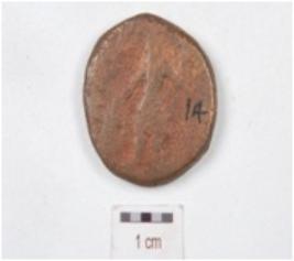 | Description / विवरण | A copper coin, round in shape, image of standing made with both hands raised is depicting on obverse side, and standing diety with one hand raised is depicting on reverse side, made with cast technique, chemically treated and preserved. |