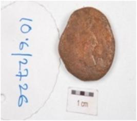 | Description / विवरण | A copper coin, round in shape, image of standing male depicted on obverse side and standing made with left hand raised depicted on reverse side, chemically treated and preserved, made by cast technique. |