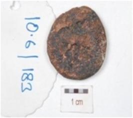 | Description / विवरण | A copper coin, round in shape, defaced image on obverse side and reverse side, chemically treated surface and preserved, made by cast technique. |