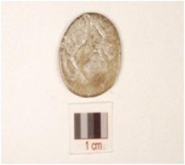 | Description / विवरण | A round shaped silver coin, having indeterminate image on obverse side and image is not clearly visible on reverse side, tarnished surface. |