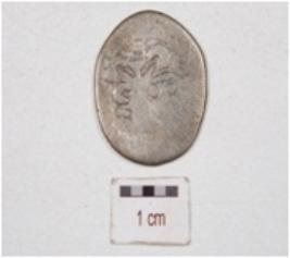 | Description / विवरण | A silver coin, round in shape, having tree motif on one side surface, and other side the unidentified image depicted. |