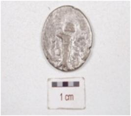 | Description / विवरण | A silver coin, round in shape, surface is smooth and having tree motif one side surface, unidentified image on other side and tarnished surface. |