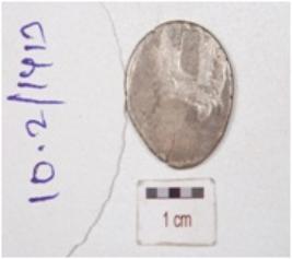 | Description / विवरण | A silver coin, round in shape, having animal image on one side surface, another side the image is not clear and tarnished surface. |