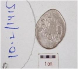 | Description / विवरण | A silver coin, round in shape, having tree motif on one side surface and another side surface is defaced. |