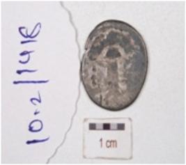 | Description / विवरण | A silver coin, surface is smooth and round in shape, having tree motif on one side surface ,another side is defaced and tarnished surface. |