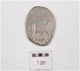| Description / विवरण | A silver coin, round in shape, having unidentified image on both side surface and tarnished surface. |