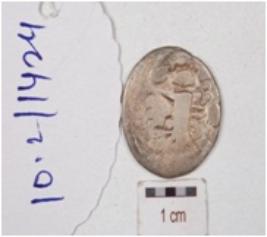 | Description / विवरण | A silver coin, round in shape, having tree motif on one side and another side is not clear. |