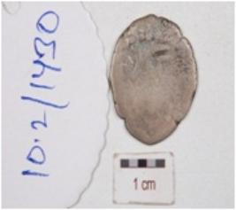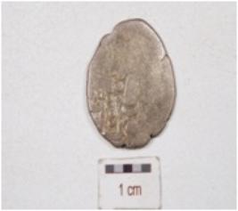| Description / विवरण | A silver coin, irregular roundish surface, having unidentified image on both side surface and tarnished surface. |
