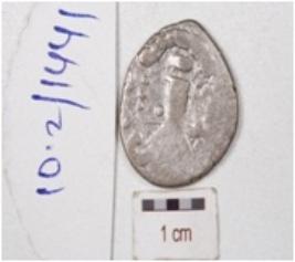 | Description / विवरण | A silver coin, round in shape, having tree modif on one side surface, unidentified modif depicted on other side surface. |
