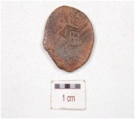 | Description / विवरण | A copper coin, round in shape, unidentify motif on surface is chemically treated and preserved. |