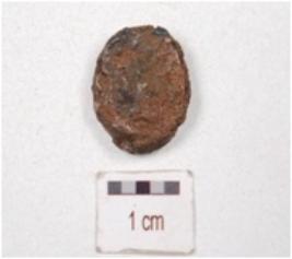 | Description / विवरण | A copper coin, round in shape, human figure on one side and other is not clearly visible, surface is chemically treated and preserved. |