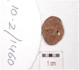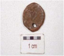 | Description / विवरण | A copper coin, round in shape, human figure on both side, surface having hole, surface is chemically treated and preserved. |
